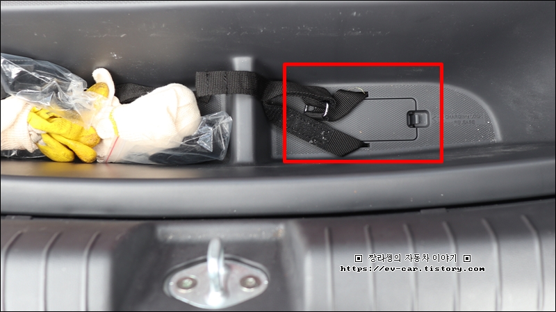 휴대용 완속충전케이블이 들어 있던 자리 아래에 보면 뚜껑이 하나 있습니다.