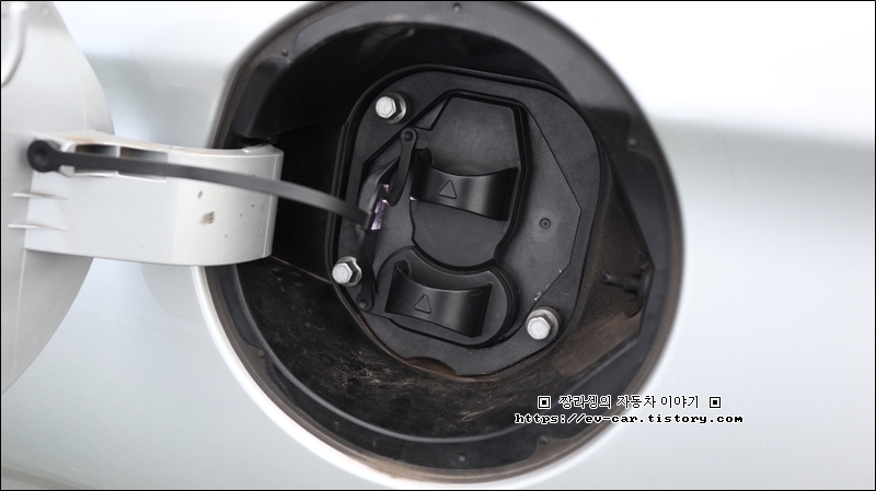 완속충전시에는 위쪽 뚜껑만 열고 충전기를 연결하면 됩니다.