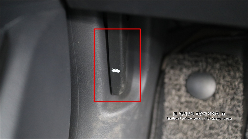 아이오닉 전기차는 운전석 핸들 아래쪽에 보면 아래와 같은 레버가 있습니다.