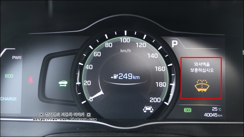 며칠전부터 계기판에 "와셔액을 보충하십시오"라는 문구가 뜨기 시작했습니다.