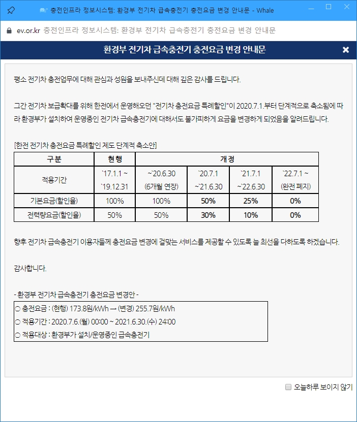 저공해차 통합정보 누리집에 들어가보니 팝업으로 알림이 뜨네요.